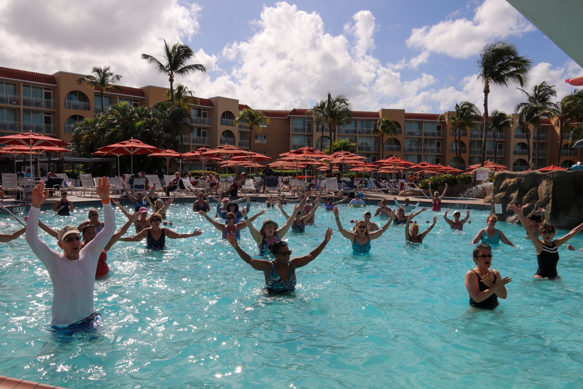Challenge your friends to a billiards game in the upper lobby, or head outside for shuffleboard, bean bag toss, giant chess, and ping pong by the pool. If you’re feeling competitive, jump into a pool volleyball game or crank up your fitness with our lively aqua aerobics classes. Plus, our Wii games will get everyone moving and laughing!